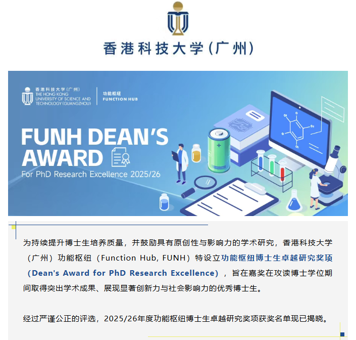 The first PhD student in EPES Lab, Zifeng Chen, was awarded the First Dean’s Award for PhD Research Excellence from Function Hub at HKUST(GZ)!